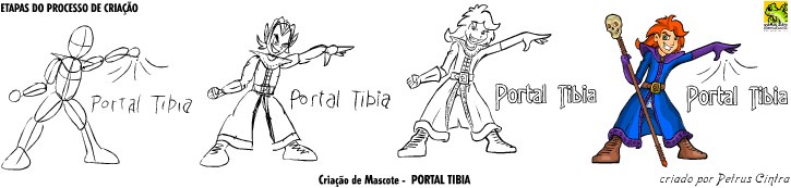 Com o personagem escolhido, partimos para fazer o fansite item. Chamamos o João Matheus para desenhar, e demos para ele o seguinte escopo: Nós queremos um doll que mexa os bracinhos, arrote, levante uma bandeirinha com o logo do Portal Tibia e faça “hi-five”.