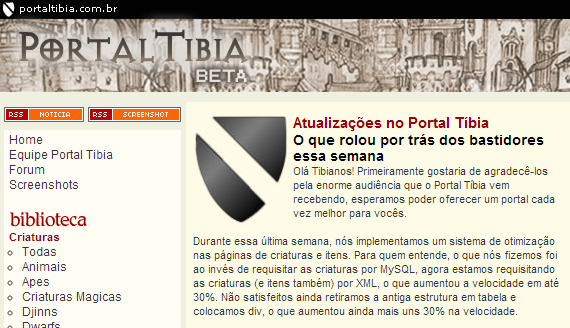 E então, mais uma vez (sim, de novo) o Portal Tibia teve seu layout alterado para o que usamos atualmente. Agora muito mais prática, a nova versão do site permite que mais notícias sejam exibidas ao mesmo tempo.