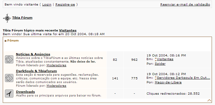 Chegou um tempo em que a comunidade pedia um espaço para debater e, para tal, criou-se o primeiro fórum brasileiro de Tibia, o DarKSouLs Fórum. Primeiro o fórum usou o Grupos.com.br, mas por pouco tempo. Logo em janeiro, foi feita uma nova versão do fórum. Criada no Yahoo! Grupos, a nova versão, cujos logo e layout podem ser contemplados abaixo, ainda existe e pode ser encontrada aqui. Muitos eram os acessos ao fórum, já que esse contava com diversos tópicos, fakes, downloads etc.