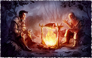 O velho homem não disse uma palavra, ambos sentaram quietos ao redor do fogo enquanto assistiam as chamas cintilarem através da madeira. Tibicus finalmente quebrou o silêncio, depois de se levantar para colocar um outro pedaço de tronco no fogo: “Não é que eu me recuse a admitir que minha velha armadura não está destinada à encarar futuros desafios, mas é tão difícil desapegar-me…”
