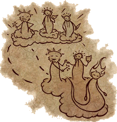 “Bem, onde eu parei? Ah, sim! Então Fardos e Uman uniram forças para finalmente criar algo. Ainda assim, nenhuma de suas tentativas foi bem sucedida e o poder que eles gastaram verteu pelo vazio. Mas então, algo inesperado aconteceu e nenhum dos deuses conseguiu explicar o porquê. Uma deusa brilhante saiu do vazio, irradiando perfeita harmonia. Tibiasula. Fardos e Uman deram boas-vindas a beleza divina que aceitou com prazer trabalhar com eles. Zathroth, no entanto, estava cheio de ódio mas escondeu seus sentimentos.