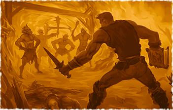 “Mas eu tenho que confessar uma coisa, Vascalir. Eu não sou o herói que você espera que eu seja. Eu não tenho nenhum equipamento adequado e ainda falta-me força para competir contra um orc.” Burchan tinha que dizer-lhe. “Eu vejo,” afirmou Vascalir. “Bem, no entanto, há um enorme potencial dentro de você, eu posso sentir isso. Por enquanto, vou dar-lhe algumas tarefas menores que o ajudará a melhorar a sua força e quem sabe, talvez você também possa ganhar algum equipamento melhor.”