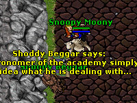 Ela rapidamente atravessou a cidade e encontrou o mendigo. Infelizmente, ele não era muito falante. Ela tentou suborná-lo com dinheiro. Primeiro, o mendigo não queria derramar seus feijões, mas persistente e escutando como ela era, ele finalmente admitiu que ele tinha sido cientista uma vez. Sua memória parecia voltar claramente com mais dinheiro.