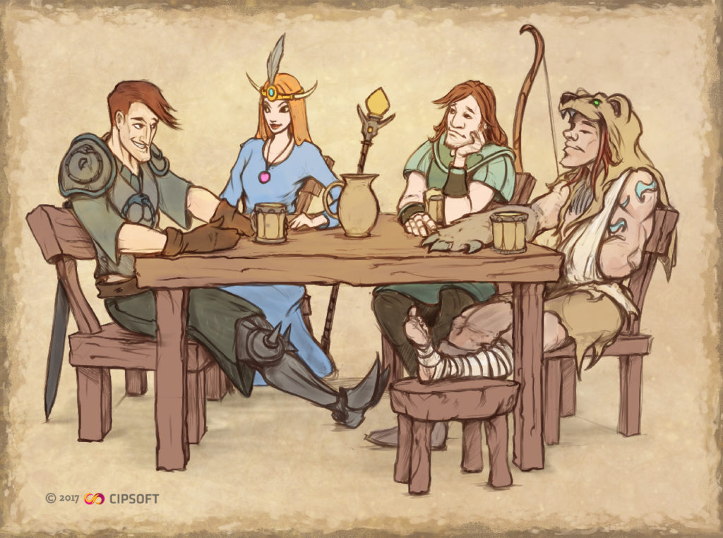 “Bem, o que está feito está feito. Céus, olhe só a hora! Tenho que ir, cuide-se, Frodo. Até a próxima!” Ele disse deixando o bar. Depois da alameda, ele viu seus amigos já o esperando perto do correio de Benjamin. Fridolin, o paladin, o e Tabea, a feiticeira, acenaram para ele à distância, mas ele não conseguiu ver Emilio, o druida, em lugar algum. Quando ele cumprimentou a todos, ele soube de imediato que havia algo errado. “Onde está Emilio?” Ele perguntou. “Você não soube? Ele está no templo! Quentin está cuidando dele. Não parece nada bom!” Tabea soluçou. “Mesmo se ele sobreviver, levará algum tempo até que ele possa voltar a caçar.” “O quê?! Mas como?! O que aconteceu?” Tibicus não tinha ideia que seu amigo estava à beira da morte.