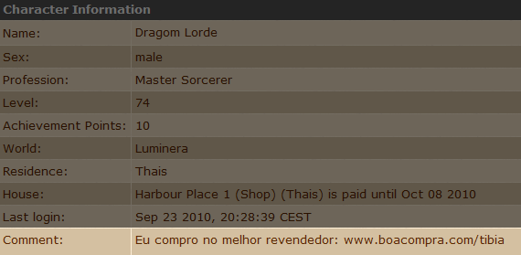 Comprando sua Premium Time entre os dias 1 a 31 de outubro e colocando nos comentários do seu personagem a frase “Eu compro no melhor revendedor: www.boacompra.com/tibia”, você estará participando do sorteio de 5 premium times de um ano e vários cupons do Boa Compra Gold.