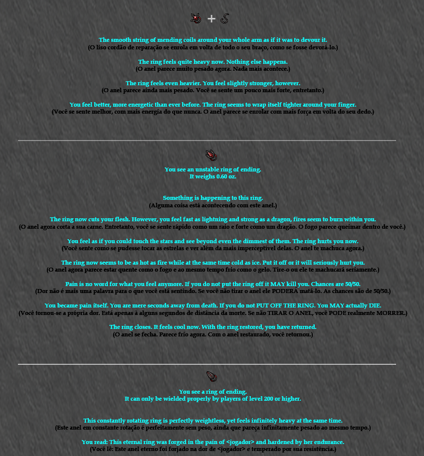 E assim, baseando-se na observação sugestiva da descrição dos itens, o jogador Forex Wizard foi o primeiro a descobrir que os dois itens poderiam ser combinados, para originar o Unstable Ring of Ending.