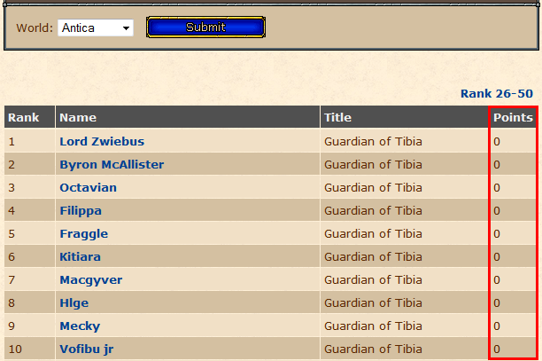 Nota: A pontuação ainda não está visível. A CipSoft estará atualizando ao longo do dia.