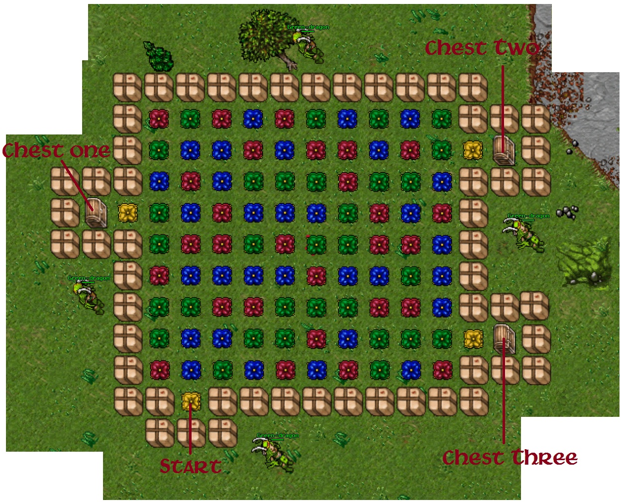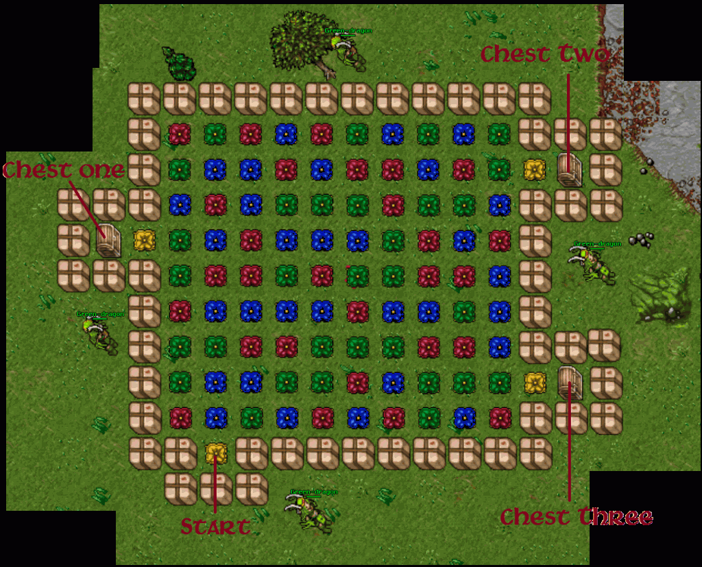 A jogadora Green-dragon criou mais um evento para os jogadores de Danubia. O jogo consiste em descobrir o caminho correto, através de um labirinto, até um baú com prêmios. Ao todo são 3 baús, cada um com prêmios diferentes e somente o primeiro que conseguir chegar ganhará os prêmios.