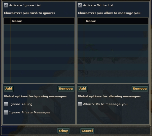 Own Character in Game Window (opções relacionadas ao seu personagem na tela do jogo)