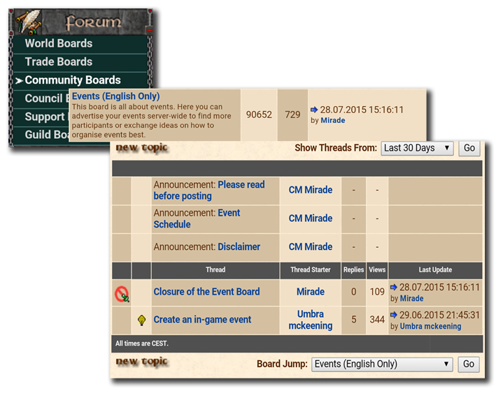 A empresa orienta que, a partir de agora, os jogadores utilizem o World Board de seu mundo ou o Gameplay Board para anunciar eventos ingame que estejam organizando.