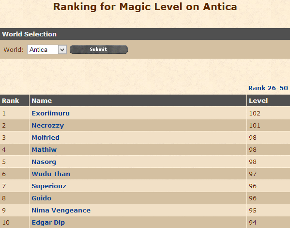 Alem de ser morador da Isle of Solitude, Guido, um sorcerer level 20, é top 7 em Antica e top 424 mundial no que diz respeito a Magic Level! Ele possui um incrível ML 96!
