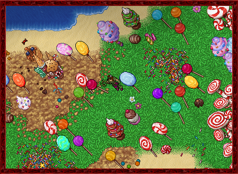 doces e prados de marzipã. Pequenas fadas e criaturas míticas coloridas tagarelavam