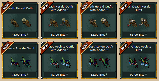 A CipSoft acaba de anunciar mudanças em sua loja de produtos! Foram disponibilizados mais dois outfits completos Chaos Acolyte Outfit e Death Herald Outfit.
