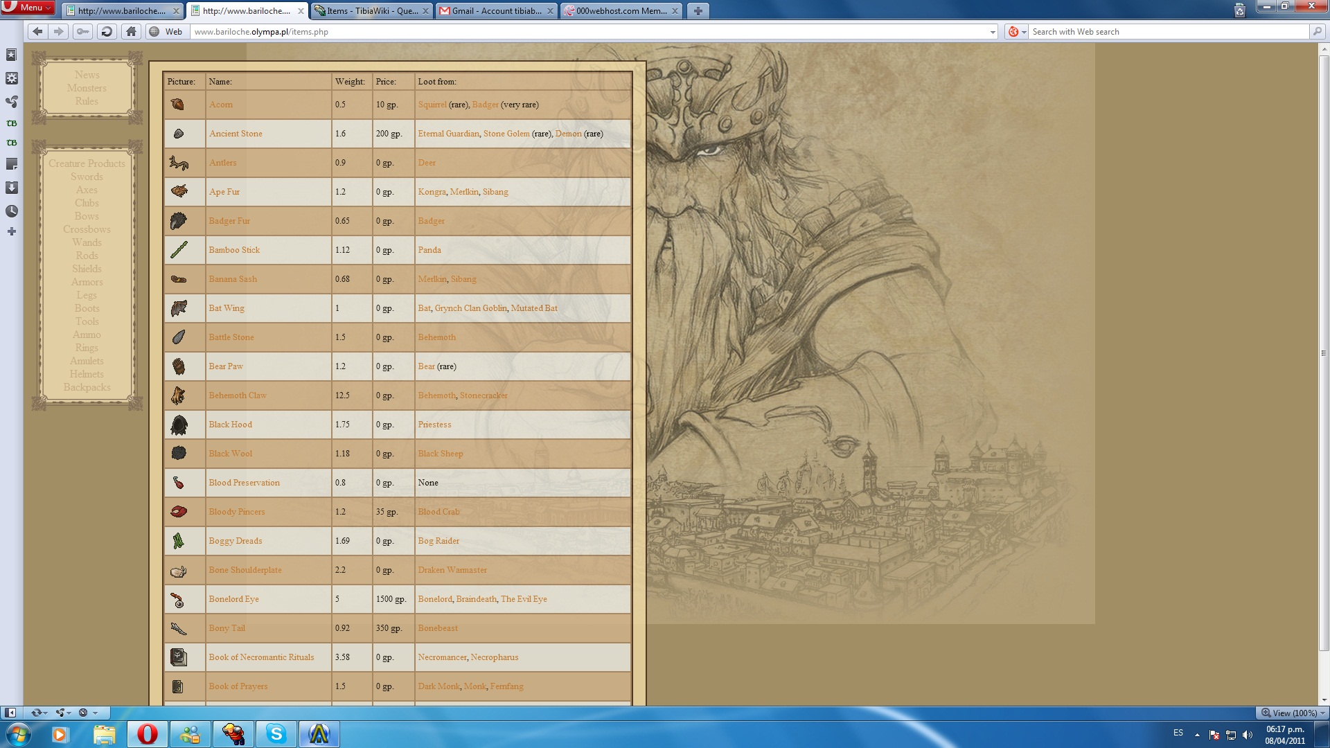Então, comecei trabalhando em um website chamado tibiabariloche.webs.com, que era essencialmente um website que servia para hospedar imagens e vídeos sobre experiências com o jogo que eu tinha com meus amigos RL do “time” e também tentar dar um pequeno espaço para a comunidade tibiana de Bariloche publicar informação e conteúdo.