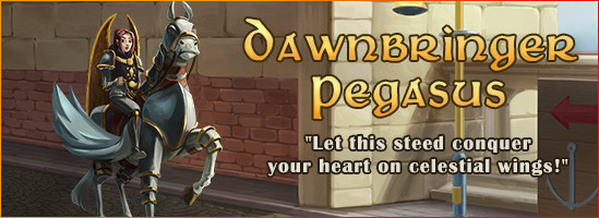 O Dawnbringer Pegasus é uma nobre montaria de inspiração divina, com suas asas radiantes e crina brilhante que enchem os observadores piedosos de esperança e coragem. Eleve-se acima da escuridão, espalhe a esperança e monte essa gloriosa besta batalha a dentro, para derrotar os servos do mal!