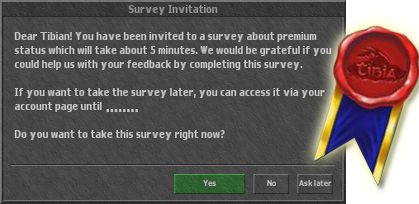 Desde o final do ano, passado a CipSoft iniciou uma nova modalidade de feedback. Semanalmente, por amostragem, alguns jogadores são aleatoriamente convidados a responder um questionário.