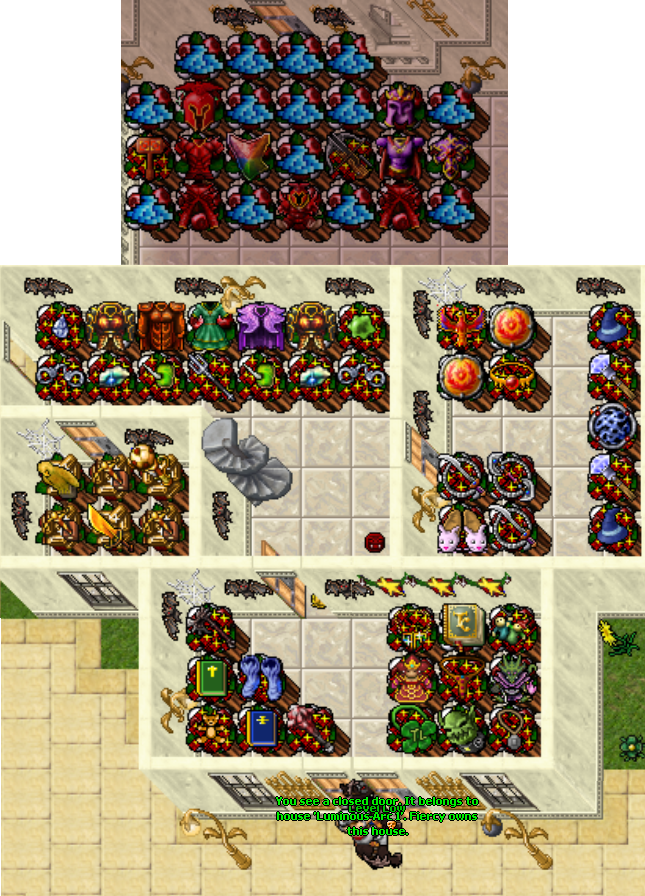 Casa do jogador Fiercy (89), de Libera, nela podemos ver vários itens raros, entre eles um Demon Set, um Amazon Set, vários itens de fansites, entre outros.
