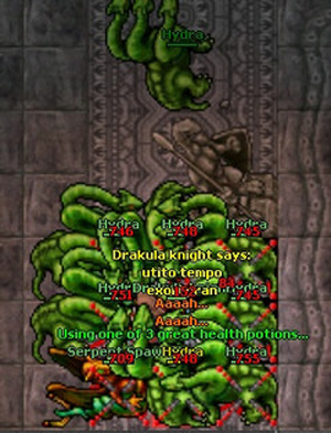 Jogador Drakula knight (317), de Harmonia, mostrando que também sobrevive a 7 Hydras e 1 Serpent Spawn.