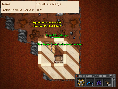 Squall Arcalarya de Julera conseguiu uma Sam’s Old Backpack, fez a quest e ganhou a Dwarven Armor.