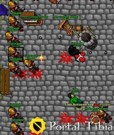 Este é o Mercutio, ele é um NPC que fica em Greenshore, mas para falar com ele você precisará se transformar em algum instrumento musical com uma Chameleon Rune. Transformado, toque uma vez e fale “hi” e você ganhará uma Surprise Bag (Red) ou uma Surprise Bag (Blue). Além disso, a cada uma hora, se você falar “fun” para ele, ele sumonará algumas Groupies, e as vezes, Fan, relaxa, eles não são fortes apesar de terem bastante vida. Quando mortos, eles dropam Chameleon Rune e instrumentos musicais.