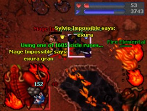 Jogador Mage Impossible, master sorcerer de Luminera, fugiu por pouco da morte durante uma hunt de demons em Yalahar.