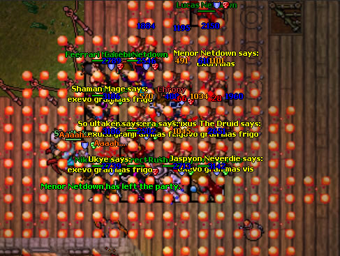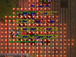 Alguns jogadores do servidor de Shanera resolveram dar combos de ultimates em si mesmos. Não se sabe porque fizeram isso, mas deu uma bela foto. Entre os jogadores que morreram, esta o elite knight Chrony, do level 335.