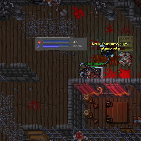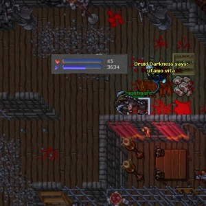 Druid Darkness, elder druid level 217 de pacera, tomou kick durante uma caçada, quando voltou estava quase morrendo, se salvou graças ao utamo vita.