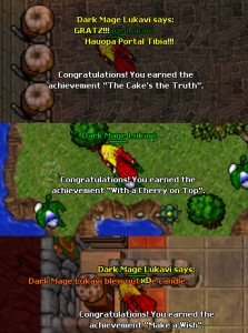 Dark Mage Lukavi de Honera conquistando três achievements super fáceis: fazer 30 bolos, decorar 20 bolos e “apagar” a vela de 5 bolos de aniversário. Ou seja, com 30 bolos, você consegue completar as 3 conquistas.