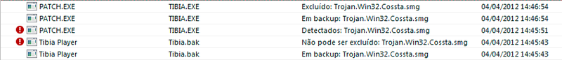 Hoje a tarde vários jogadores receberam um aviso do anti-vírus Kaspersky notificando que o Tibia está com Trojan e não estão podendo instalar o jogo novamente, pois este é bloqueado pelo anti-vírus.