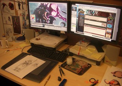 Penciljack: Photoshop CS5 com uma Wacom Intuos3 (tamanho A4), Painter12 e o bom e velho lápis e papel 😉