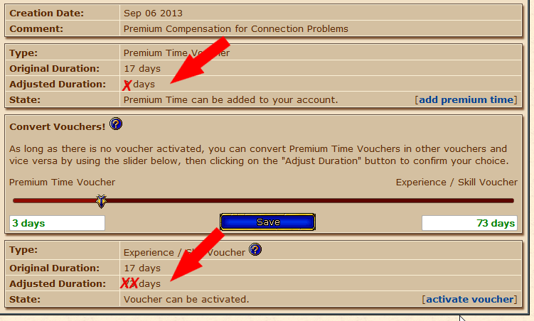 Estou me sentindo muito burra, ainda não consegui entender, quando começou esses trecos de lags e ataques DDoS eu tinha acho que uns 90 dias de P.A. e hoje devo ter uns 50, até aí beleza, lá na minha página do site aparece esse treco de vouchers aí eu clico lá, e aparece 17 dias de p.a. e mais 17 dias de 2x XP e Skill, eu posso por todos os dias de 2x XP? Ai se eu rolar toda a barra pro “Premium Time Voucher” eu fico com 85 dias de 2x XP e Skill, é isso mesmo? Por mim eu não adiciono nenhum dia de p.a. só de XP pode ser feito isso? No caso totalizando 85 dias de 2x XP E SKILLS