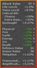 Observe que Ruse, Momentum, Onslaught, Transcendence, Amplification, Drome potions, Drome potion cooldowns, Perfect Shot, Cleave e Damage Reflection não serão exibidos se seus valores permanecerem inalterados e forem 0. No entanto, as resistências a physical, earth, fire, holy, ice e death sempre serão exibidas, mesmo que seu valor seja 0.